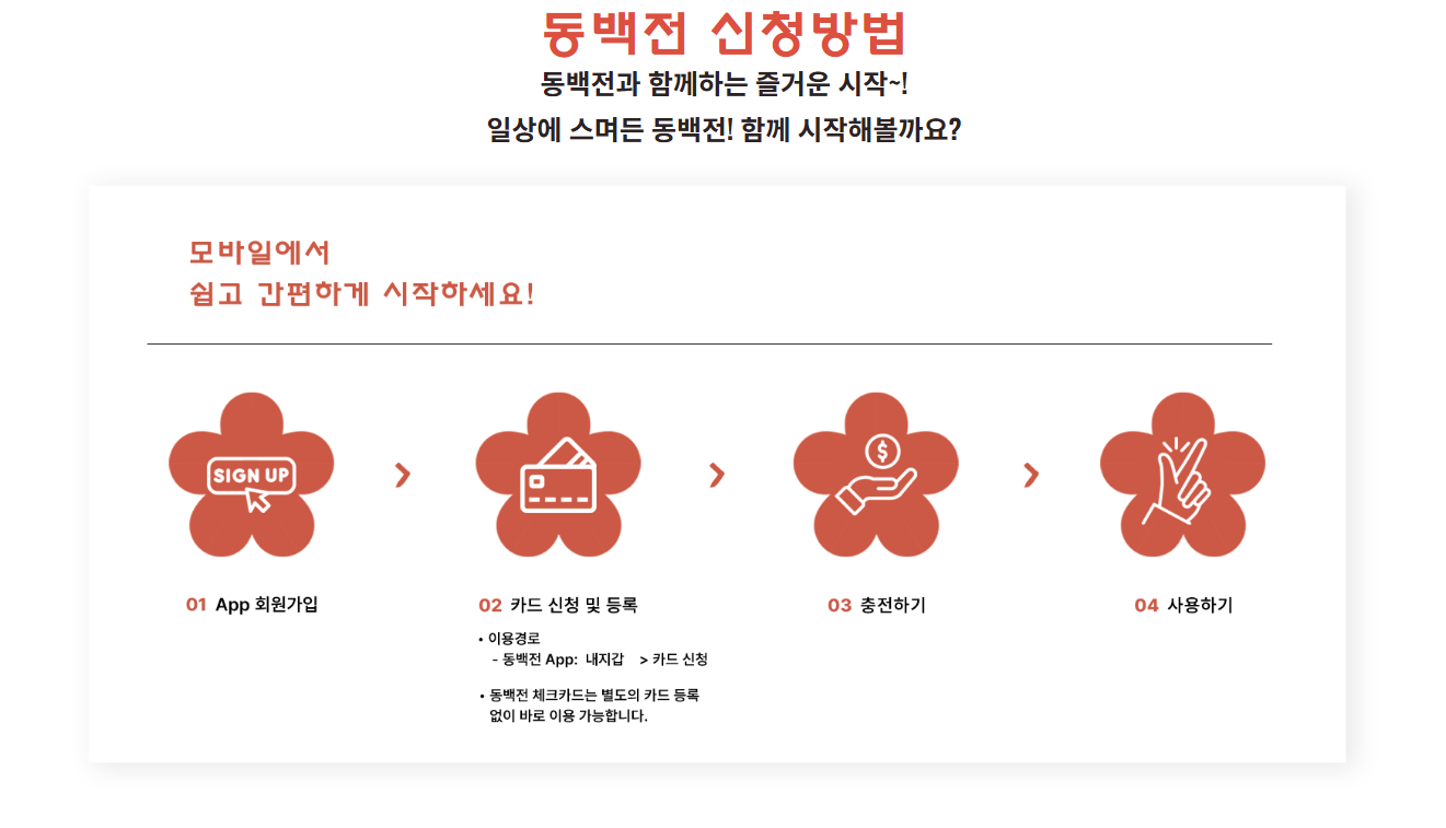 - 앱 신청: 동백전 앱에서 신청 후 배송(3~7일 소요)