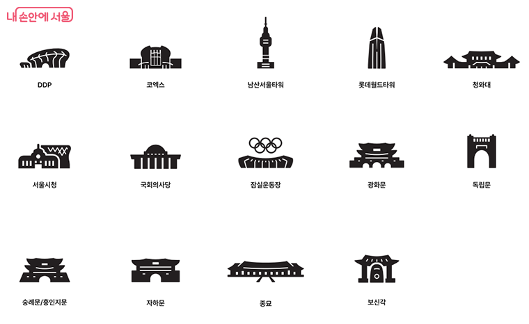 | 명소 픽토그램 | 서울의 주요 관광 명소 14곳을 아이콘 형태로 표기 |
