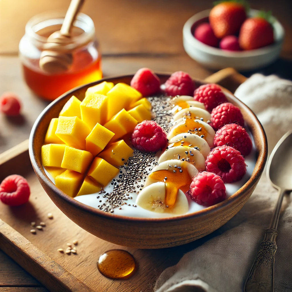 - 재료: 그릭요거트, 블루베리, 바나나, 견과류, 꿀