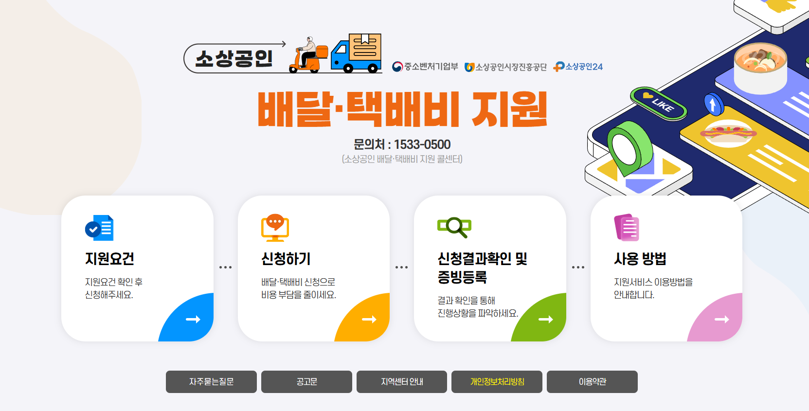 - 소상공인 배달·택배비 지원 콜센터: ☎ 1533-0500