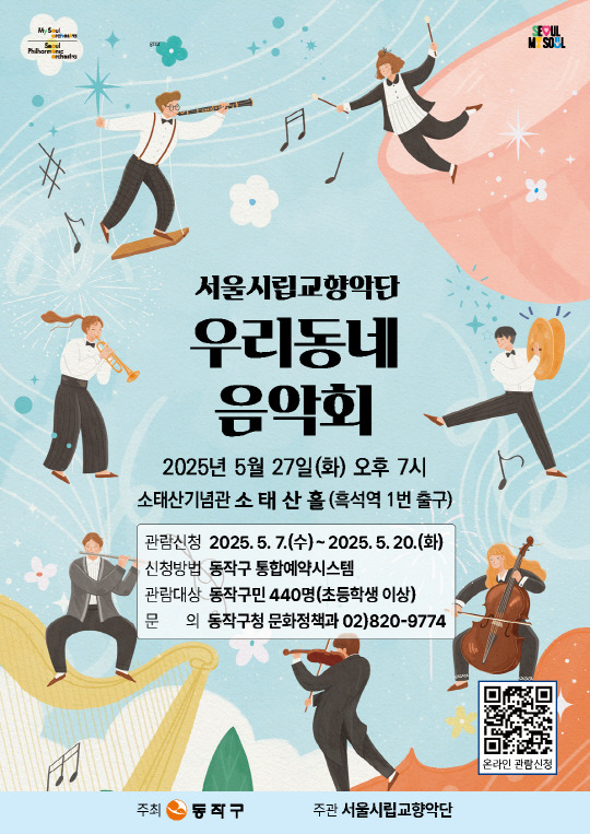 - 예매: 동작구 통합예약시스템에서 5월 7일(수)부터 5월 20일(화)까지 신청 가능