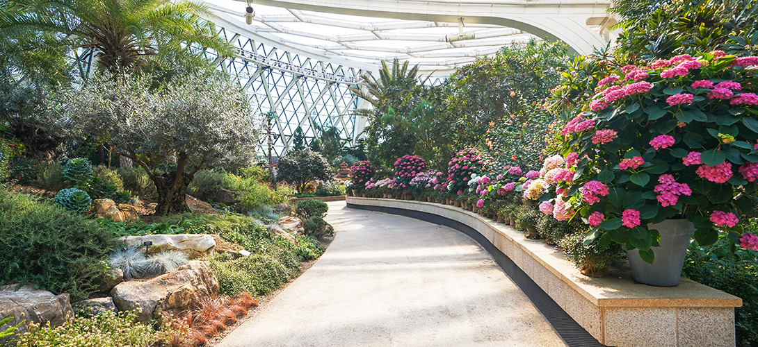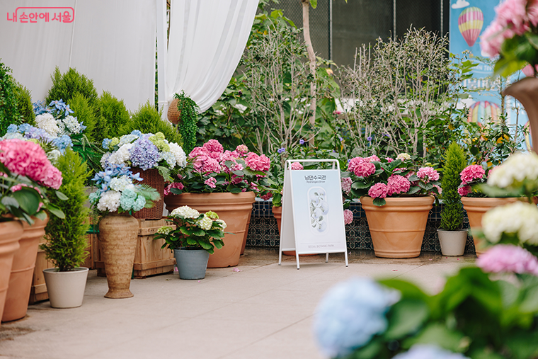 온실 내 지중해관 한편에는 다양한 색상과 꽃 모양, 높낮이가 다른 수국을 활용해 로맨틱한 분위기의 포토존이 마련되어 있어 관람객들에게 특별한 추억을 선사합니다.